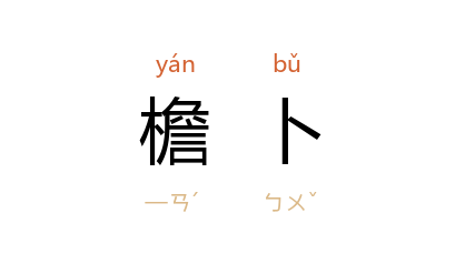 引南朝 陈 徐陵 《东阳双林寺傅大士碑》:“色艳沉檀,香踰簷卜。”吴兆宜 注:“《经》云:‘如入簷卜林,闻簷卜花香,不闻他香。’”唐 段成式 《酉阳杂俎·木篇》:“陶真白 言:梔子翦花六出,刻房七道,其花香甚,相传即西域簷卜花也。”清 孙枝蔚 《胜音上人持张虞山书见访兼示与淮上诸子唱和》诗:“花中爱簷卜,味中想醍醐。”