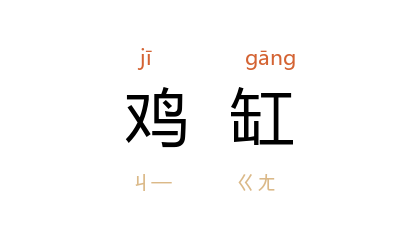 引清 蒋士铨 《临川梦·集梦》:“你在那槐庭酩酊倒鸡缸,我在这茆店昏沉偃石床。”邵海清 校注:“鸡缸,成窑酒杯中的一种精品。 程哲 《窑器説》:‘鸡缸上画牡丹,下有子母鸡,跃跃欲动。’”