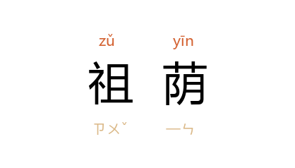 引《二刻拍案惊奇》卷七:“仲臣 长子 元广,也是 祝 家女婿,他有祖荫在身,未及调官,今且守孝在 汉州。”明 高濂 《玉簪记·破虏》:“腰下雪喷剑,马前云绕旗,百年承祖荫,敢不报明时。”