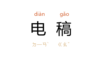 引《二十年目睹之怪现状》第九二回:“﹝ 惠藩臺 ﹞便亲自起了个一百多字的电稿,用他自己私家的密码译了出来,送到电局。”茅盾 《子夜》二:“他把拟好了的打给省政府请兵的电稿给 竹斋 过目。”