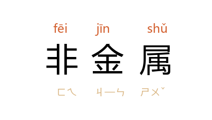 ⒈ 凡不具有传热、导电等金属特性的物质,如氧、氢、氯、硫、磷等。