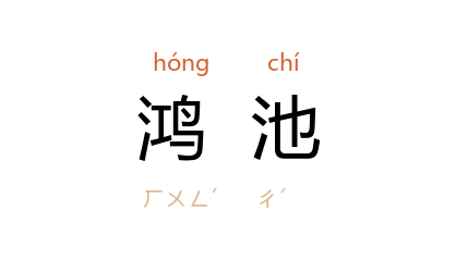 引《后汉书·百官志三》:“鸿池,池名,在 雒阳 东二十里。”北魏 郦道元 《水经注·穀水》:“穀水 又东注 鸿池陂。”南朝 齐 谢朓 《拟宋玉<风赋>》:“下 鸿池 而莲散,上 爵臺 而云生。”唐高宗 《颁行新令制》:“鸿池 衍誥,统理详密;螭钮腾文,规模宏远。”