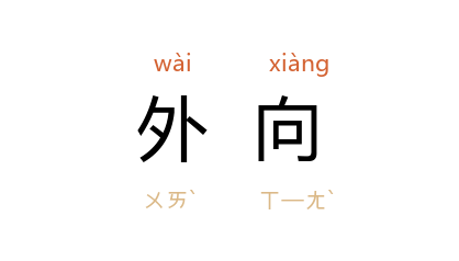 ⒊ 心理学名词。与“内向”相对。谓人重视外在世界,性情开朗,性格活泼,好活动,爱社交。
