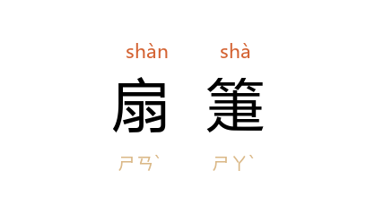⒈ 扇子。《方言》第五:“自关以东谓之箑,自关以西谓之扇。”