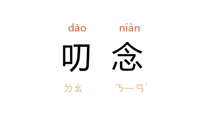 ⒉ 口中不停的喃喃自语。也作「叨念」。