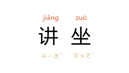 引《魏书·彭城王勰传》:“故屈朝彦,遂亲传説;将临讲坐,惭战交情。”《南史·袁宪传》:“会 弘正 将升讲坐,弟子毕集,乃延 宪 入室,授以麈尾,令 宪 竖义。”唐 道宣 《续高僧传·习禪二·智顗》:“道俗延颈,老幼相携,戒塲讲坐,众将及万。”