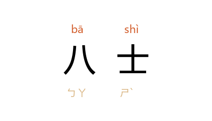 ⒈ 相传周代八个有才能的人。《论语·微子》:“周有八士:伯达、伯适、仲突、仲忽、叔夜、叔夏、季随、季騧。”八士的时代,说法不一。《汉书·古今人表》及贾逵谓为文王时人,郑玄说是成王时人,刘向、马融说是宣王时人。并见《论语·微子》宋邢昺疏。清朱右曾《逸周书集训校释》谓为武王时人。