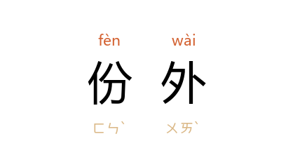 引柳青 《铜墙铁壁》第十七章:“看着战士们一个个走上前去,他觉得份外得势。”柳青 《铜墙铁壁》第十九章:“石得富 心里份外兴奋。”