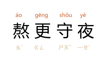 引《人民文学》1977年第1期:“总理经常熬更守夜,废寝忘食地工作。”《平原作战》第四场:“他们熬更守夜的够辛苦的喽!”