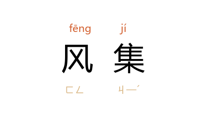 引《三国志·魏志·管辂传》“明年二月卒” 裴松之 注引 三国 魏 管辰 《管辂别传》:“周流五曜,经纬三度,口满声溢,微言风集。”宋 范仲淹 《议守》:“﹝ 西戎 ﹞每举众犯边,一毫之物,皆出其下,风集云散,未尝聚养。”