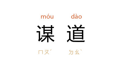 引《论语·卫灵公》:“君子谋道不谋食。”宋 王令 《奉寄黄任道》诗:“久諳末俗难谋道,益厌庸儿妄问儒。”吕澂 《中国佛学源流略讲》第九讲:“江西 主 马祖,湖南 主 石头。一般学禅的大都往来于两家之间。其中有谋道的,也有谋食的。”