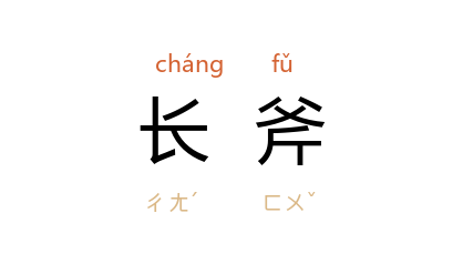 引《墨子·备城门》:“长斧,柄长八尺。”孙诒让 间诂:“《备蛾傅》篇云:斧柄长六尺。此较彼长二尺,故曰长斧。”《墨子·备城门》:“城上之备:渠譫、藉车、行栈……连梃、长斧。”《宋史·韩世忠传》:“背嵬军各持长斧,上揕人胸,下斫马足。”
