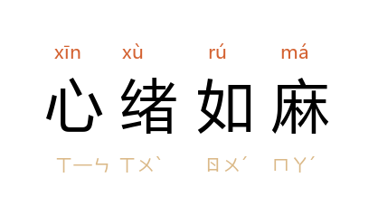 ⒈ 心思紊乱,没有头绪。也作「心乱如麻」。