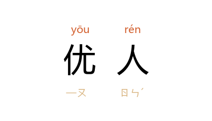 ⒈ 优子,古代以乐舞、戏谑为业的艺人。