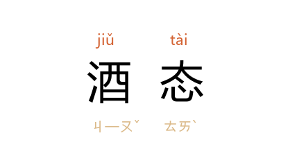 引五代 王仁裕 《开元天宝遗事·醒醉草》:“兴庆池 南岸有草数丛,叶紫而心殷;有一人醉过於草傍,不觉失於酒态。”《云笈七籤》卷八五:“今旦耆老皆令臣饮,不得即委之,是以颇有酒态。”明 程嘉燧 《水槛》诗:“酒态三杯剧,秋怀万事慵。”