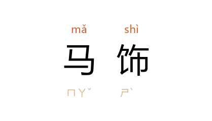 引唐 韩愈 孟郊 等《会合联句》:“朝绅鬱青緑,马饰曜珪珙。”郭沫若 《中国古代社会研究》第二篇第二章第三节:“初说 韩侯 初受命入见天子,天子赐了他些旗帜和马饰。”《文物》1981年第10期:“试对 唐 代的马具与马饰作一些考察,并约略追溯其渊源。”