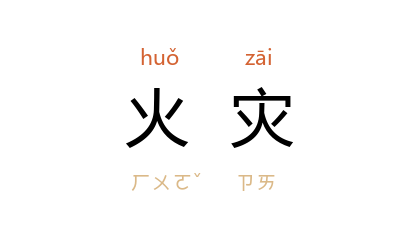 ⒈ 因失火而造成的灾害(如房屋、城镇、森林)