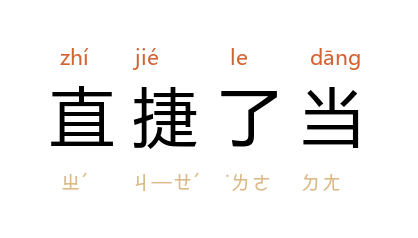 ⒈ 形容做事或说话干净俐落,毫不拐弯抹角。《通俗常言疏证·文事·直捷了当》引《病玉缘》剧:「不如待俺自救这小姐出险,一直送到俺的甥儿那边,岂不直捷了当呢?」也作「直接了当」、「直截了当」。