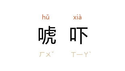 引元 关汉卿 《窦娥冤》第二折:“﹝你﹞自药死亲爷待要唬吓谁?”《水浒传》第五七回:“那个是 梁山泊 杀败的撮鸟,敢来俺这里唬吓人!”茅盾 《残冬》:“看了一会儿,他就摆出老虎威风来,唬吓那孩子道:‘想做皇帝么?你犯的杀头罪,杀头,懂得么?’”