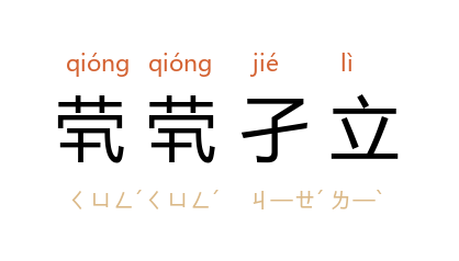 引晋·李密〈陈情表〉:「茕茕孑立,形影相吊。」唐·柳宗元〈寄许京兆孟容书〉:「茕茕孑立,未有子息,荒隅中少士人女子,无与为婚。」