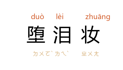 引《后汉书·五行志一》:“桓帝 元嘉 中,京都妇女作愁眉、啼糚……啼糚者,薄施目下,若啼处。”明 汤显祖 《紫钗记·裁诗》:“扶头酒醒炉香炧,堕泪妆残柳晕斜。”