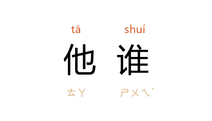 引宋 朱淑真 《秋日偶成》诗:“初合双鬟学画眉,未知心事属他谁。”元 关汉卿 《窦娥冤》第二折:“婆婆也!须是你自做下怨他谁?”元 关汉卿 《救风尘》第一折:“恁时节船到江心补漏迟,烦恼怨他谁?”