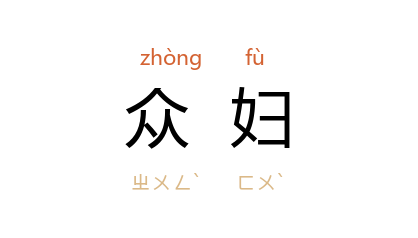 ⒈ 古代宗法制度,嫡长子之妻为冢妇,诸子之妻称“众妇”。又称介妇、庶妇。