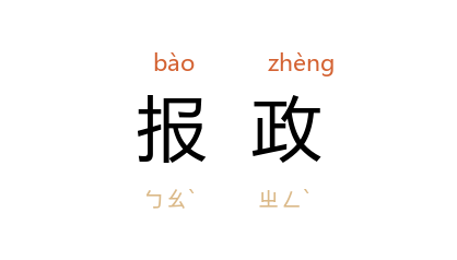 ⒈ 陈报政绩。 《史记·鲁周公世家》:“周公 卒,子 伯禽 固已前受封,是为 鲁公。鲁公伯禽 之初受封之 鲁,三年而报政 周公。