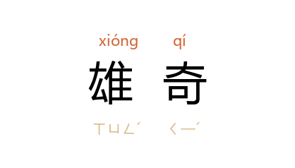 引宋 王安石 《和平甫舟中望九华山》之一:“楚 越 千万山,雄奇此山兼。”清 龚自珍 《己亥杂诗》之一五二:“浙 东虽秀太清孱,北地雄奇成獷顽。”黄人 《<清文汇>序》:“夫以吾国文学之雄奇奥衍,假罄其累世之储蓄,良足执 英、法、德、美 坛坫之牛耳。”