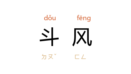 引唐 元稹 《连昌宫词》:“百官队仗避 岐薛,杨氏 诸姨车鬭风。”张相 《诗词曲语辞汇释》卷二:“鬭风,趁风也,犹云乘风或追风。”清 郁永河 《土番竹枝词》之五:“出门又插文禽尾,陌上飘颻各鬭风。”