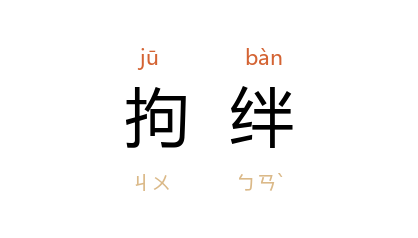 引唐 白居易 《与杨虞卿书》:“吏职拘绊,相见甚稀。”唐 罗隐 《题袁溪张逸人所居》诗:“若使浮名拘绊得,世间何处有男儿。”宋 罗大经 《鹤林玉露》卷五:“只为他见趣高,故合则留,不合则拂袖便去,更无拘绊。”