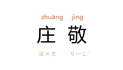 引《礼记·乐记》:“致礼以治躬则庄敬,庄敬则严威。”孔颖达 疏:“若能庄严而恭敬,则严肃威重也。”南朝 梁 沉约 《齐故安陆昭王碑文》:“在上哀矜,临下庄敬。”宋 陆游 《老学庵笔记》卷三:“对客庄敬,不肯多语。”吴组缃 《山洪》三十:“他们不知道这些乡巴老要是庄敬虔诚的把事当正经事办,就总是这个劲头。”