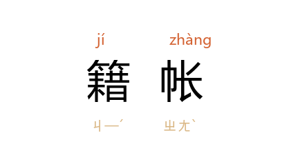 ⒈ 谓登记户口、田地、赋税等的簿册。