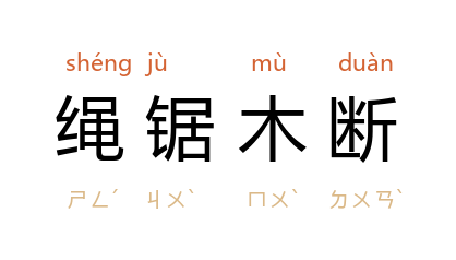 ⒈ 后遂用“绳锯木断”比喻力量虽小,日久为之,也能做成看来很难办到的事情。