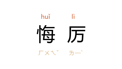 引南朝 齐 王僧虔 《诫子书》:“知汝恨吾不许汝学,欲自悔厉,或以闔棺自欺,或更择美业,且得有慨,亦慰穷生。”太平天囯 洪仁玕 《英杰归真》:“今好事者借其説,以为吉凶休咎可卜而知趋避,不必悔厉修省,大有负於古训之意。”