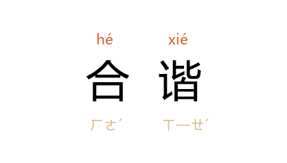引《文选·宋玉<高唐赋>》:“王乃乘玉舆,駟苍螭,垂旒旌,斾合谐。”李周翰 注:“合谐,旌斾相和之貌。”《后汉书·五行志一》:“桓帝 之末,京都童謡曰:‘白盖小车何延延。 河閒 来合谐, 河閒 来合谐!’”