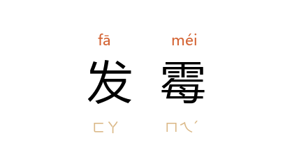 ⒈ 东西受潮后,表面生出一种灰黑色的毛状物,称为「发霉」。