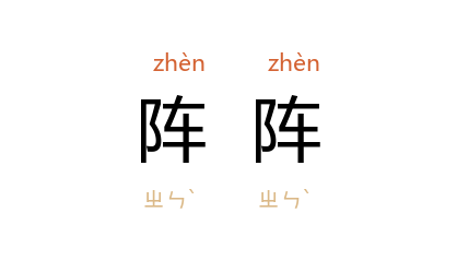 引唐·刘禹锡〈淮阴行〉五首之三:「船头大铜环,摩挲光阵阵。」宋·林逋〈梅花〉诗:「小园烟景正凄迷,阵阵寒香压麝脐。」