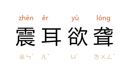 ⒈ 形容声音很大,几乎要将耳朵震聋。