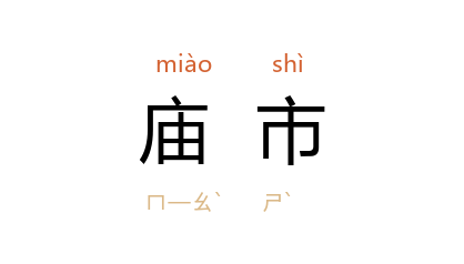 引《二刻拍案惊奇》卷三:“京师有个风俗:每遇初一、十五、二十五日,谓之庙市。凡百般货物俱赶在城隍庙前,直摆到 刑部街 上来卖。”清 陈维崧 《瑞鹤仙·慈仁寺松》词:“只新来庙市,喧豗蹙踏。”鲁迅 《华盖集续编·马上支日记》:“新年到庙市上去看年画。”