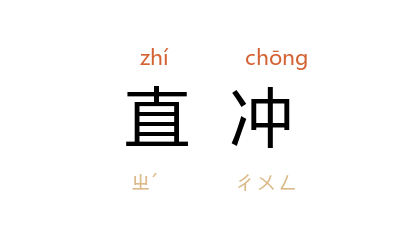 ⒈ 一直冲闯,径直朝前闯。