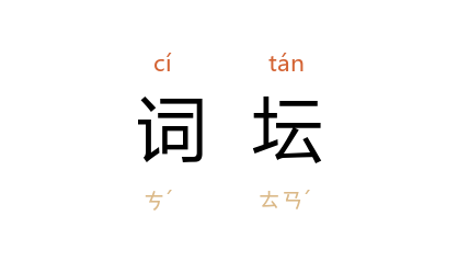 引明 陆时雍 《<诗镜>总论》:“西京 崛起,别立词坛,方之於古,觉意象蒙茸,规模逼窄。”清 秋瑾 《题乐天词丈<春郊试马图>》诗:“白 堤 苏 柳緑丝丝,正是词坛纵马时。”