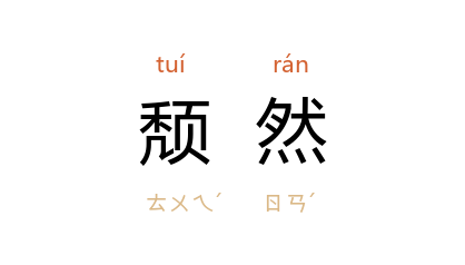 一本作“頺然”。 穨然:1.寂静;寂然。 明 谭宗 《归度庾岭》诗:“穨然下横浦,灯火乱樵渔。”