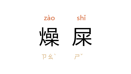 《红楼梦·第一六回》:「我还再四的求了你几遍,你答应的倒好,到如今还是燥屎。」