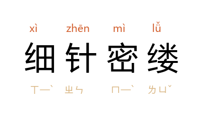 亦作“细针密綫”。 朱自清 《山野掇拾》:“世界上原有两种人:一种是大刀阔斧的人,一种是细针密线的人。”