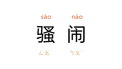 引萧红 《生死场》十七:“河边的小树随风在骚闹。”杨沫 《青春之歌》第一部第一章:“火车到站后那一霎间的骚闹,随着喷腾的火车头上的白烟消失后,又复是寂寞和空旷了。”