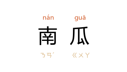 ⒈ 瓜名。俗称倭瓜、番瓜等。一年生草本植物,原产 亚洲 南部,我国普遍栽培。果实可做蔬菜;种子称“南瓜子”,供炒吃、榨油或药用。参阅 明 李时珍 《本草纲目·菜部·南瓜》、 清 吴其濬 《植物名实图考·蔬菜》。