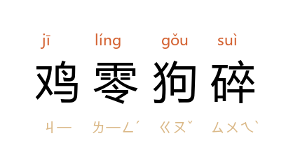 例如:「把鸡零狗碎的东西收拾整齐。」