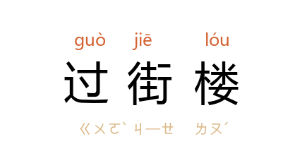 ⒈ 跨在街道或胡同上的楼,底下可以通行。