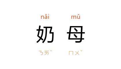 引《宋书·何承天传》:“承天 年已老,而诸佐郎并名家年少, 潁川 荀伯子 謿之,常呼为嬭母。”《北齐书·崔季舒传》:“﹝ 静帝 ﹞恒与 季舒 论之,云:‘ 崔中书 是我妳母。’”《武王伐纣平话》卷上:“此人是东宫嬭母 冯氏。”沙汀 《丁跛公》:“但那坐在公馆门口的奶母告诉他,团总已经上衙门搓早麻将去了。”
